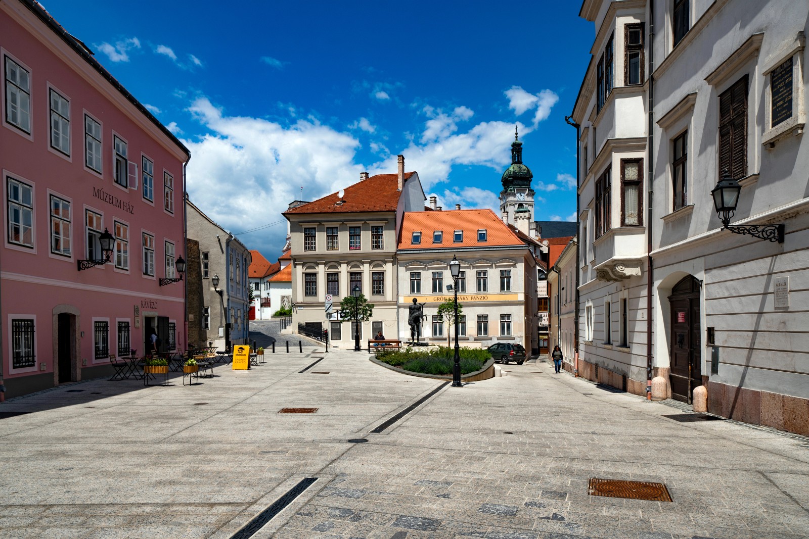 La plaza Széchenyi, el corazón de la ciudad, está rodeada de edificios perfectamente restaurados y es uno de los mejores ejemplos de urbanismo barroco de Hungría. La Basílica de la Asunción alberga laermita de San Ladislao, una de las reliquias más importantes de la nación, mientras que el Palacio Episcopal domina la ciudad desde lo alto de la colina del castillo, ofreciendo extraordinarias vistas de los tres ríos que determinaron su fortuna.